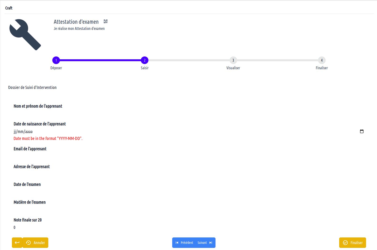However, there is an issue with the current configuration: the score can be any word. But word/20 is not a proper score. And 100/20 is not a proper score either. So we need to adapt, and set more details to the craftform.